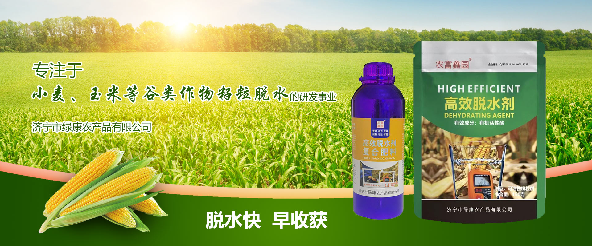 公司成立于2016年,坐落于歷史悠久的孔孟之鄉(xiāng),運河之都的文明城市濟寧,一直秉承著“全心全意為中國農(nóng)業(yè)服務(wù)”為宗旨,解決糧食收獲時水分含量大、不易存儲的問題,綠康農(nóng)業(yè)專注于“小麥、玉米等谷類作物籽粒脫水”的研發(fā)事業(yè),2020年和山東農(nóng)業(yè)大學(xué)達成戰(zhàn)略合作關(guān)系,針對玉米脫水劑一項發(fā)明專利進行全國運營,為中國糧食作物的減少烘干、減少晾曬、節(jié)能減碳、提質(zhì)增效的新型技術(shù)發(fā)明,解決中國農(nóng)民30年來玉米的貪青晚熟、積溫不夠問題而研究出來的新方法,提速農(nóng)業(yè)4.0時代機械化生產(chǎn),開啟籽粒收割新時代...